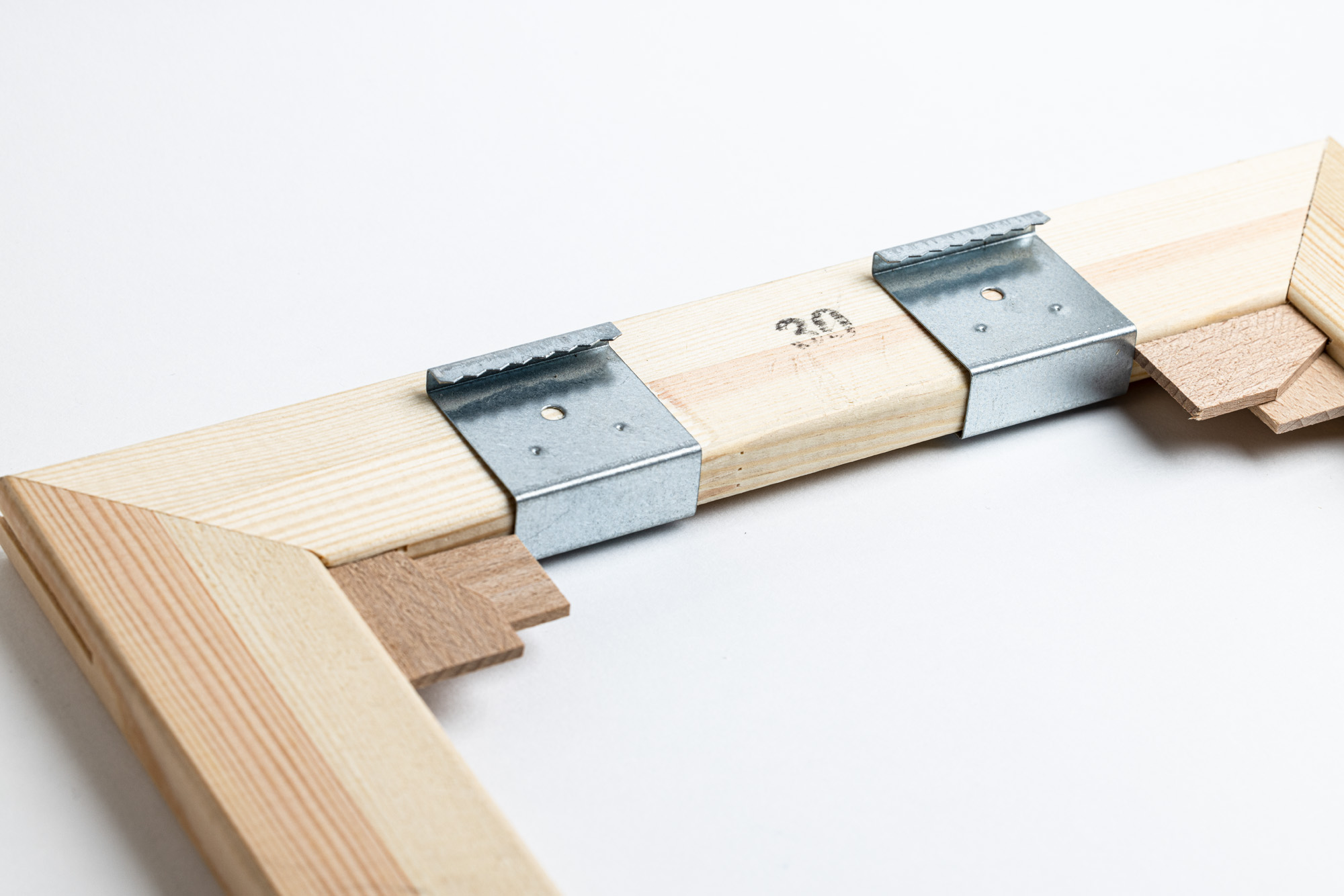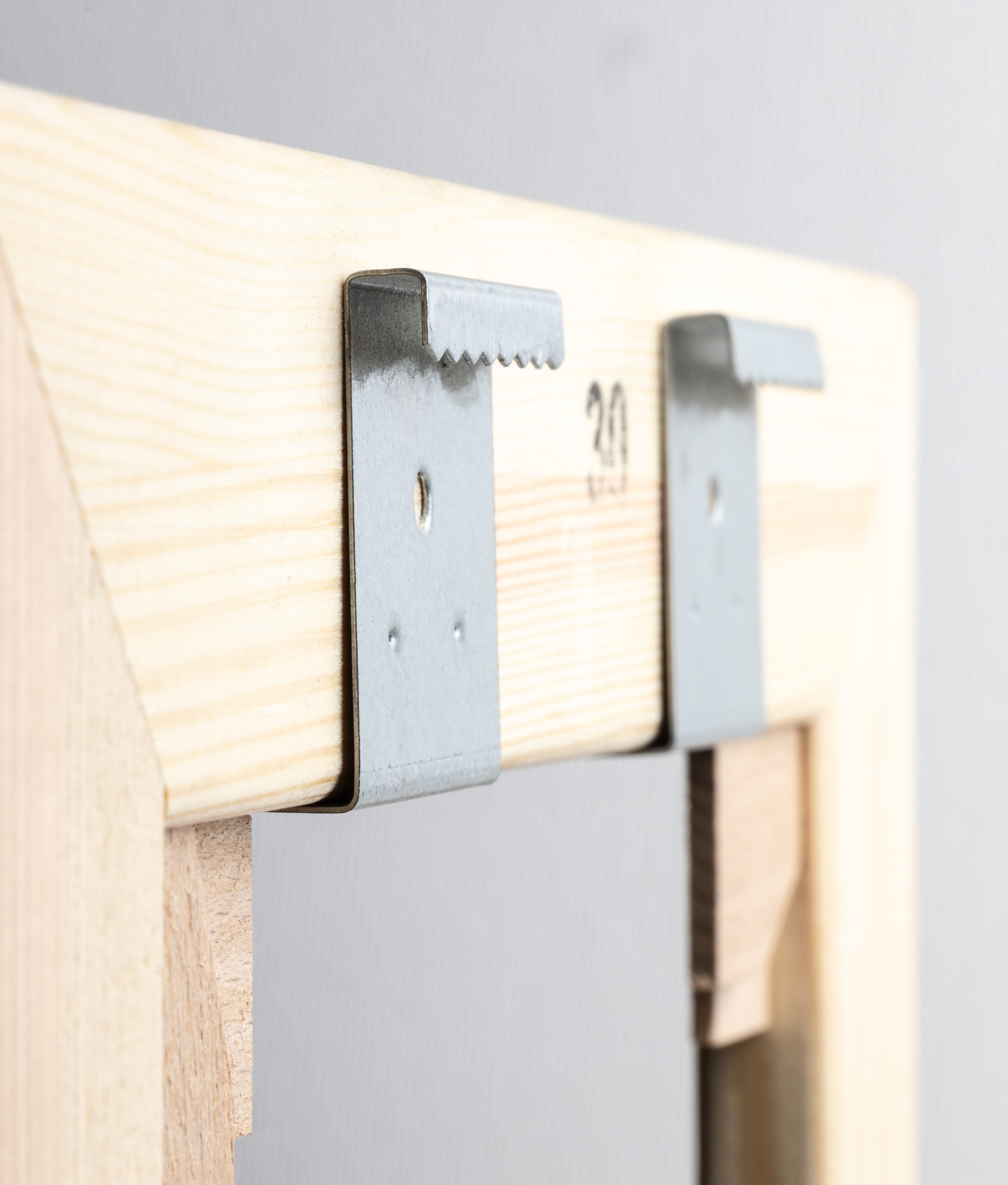 Montagefreie Rahmenaufhänger für das Keilrahmenprofil K45 (2,0 x4,5 cm.
