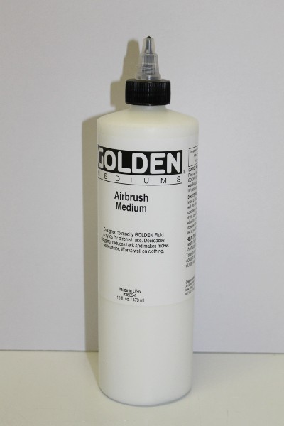 GOLDEN Airbrush Medium ist ein 100 % Acryl-Bindemittelsystem, das zur Modifizierung der GOLDEN Fluid Acrylics und anderer GOLDEN Acrylic-Produkte für die Airbrush-/Sprühanwendung entwickelt wurde. Obwohl GOLDEN Airbrush Medium speziell für flüssige Acrylfarben entwickelt wurde, reduziert es bei Sprühanwendungen auch Heavy Body, Matte, High Load, Iridescent/Interference und Fluorescent Acrylics.