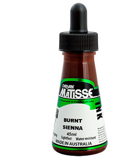 Matisse-Tinten können mit Wasser verdünnt werden, was zu ihrer Vielseitigkeit beiträgt. Wir empfehlen jedoch die Zugabe von Matisse Ink Extender, wenn Wasserbeständigkeit erforderlich ist, da die Verdünnung mit reinem Wasser die Menge an vorhandenem Acrylbindemittel verringert und die Wasserbeständigkeit der Tinte schwächt. Das Hinzufügen von Wasser alleine erhöht ebenfalls die Trocknungszeit. Bis zu 25% Matisse Ink Extender können zum Ausdünnen hinzugefügt werden.