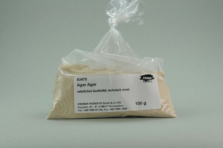 Agar-Agar ist unlöslich in kaltem Wasser. In heissem Wasser wird bei einer 1%igen Lösung ein festes Gel gebildet.