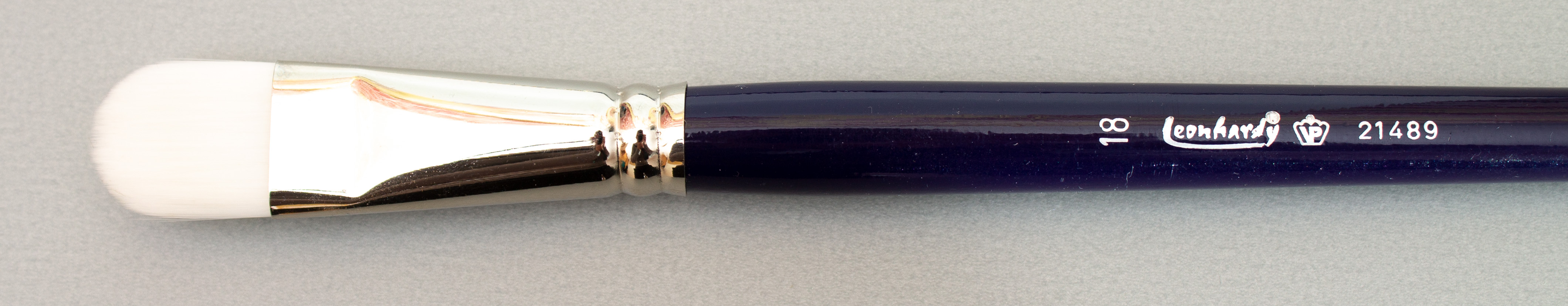 Katzenzungenpinsel, weißes Synthetikhaar, Silberzwinge, langer blauer Stiel