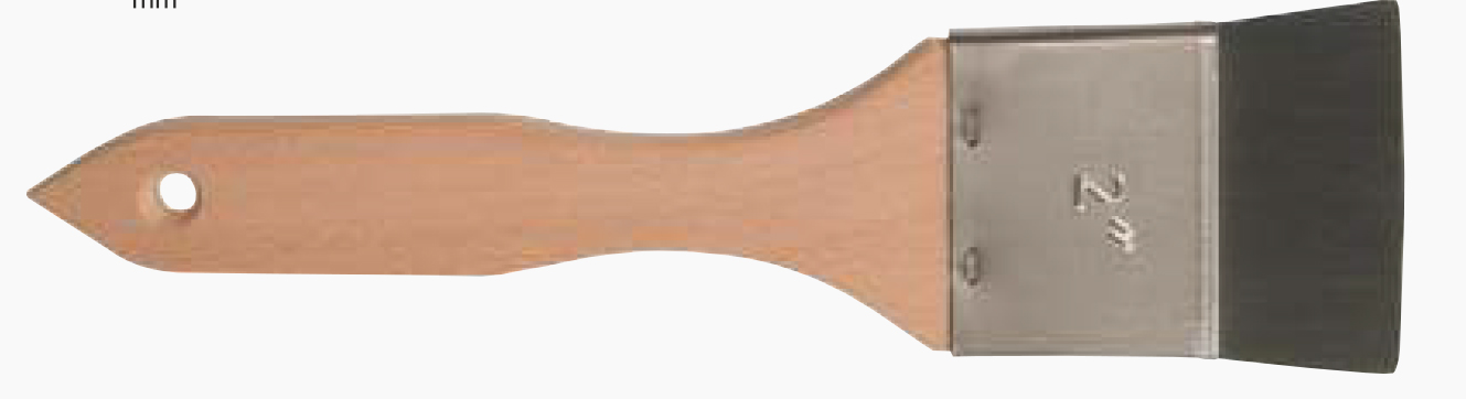 Breiter Haarpinsel, schwarzes Rindshaar, kurzer flacher Naturholzstiel.