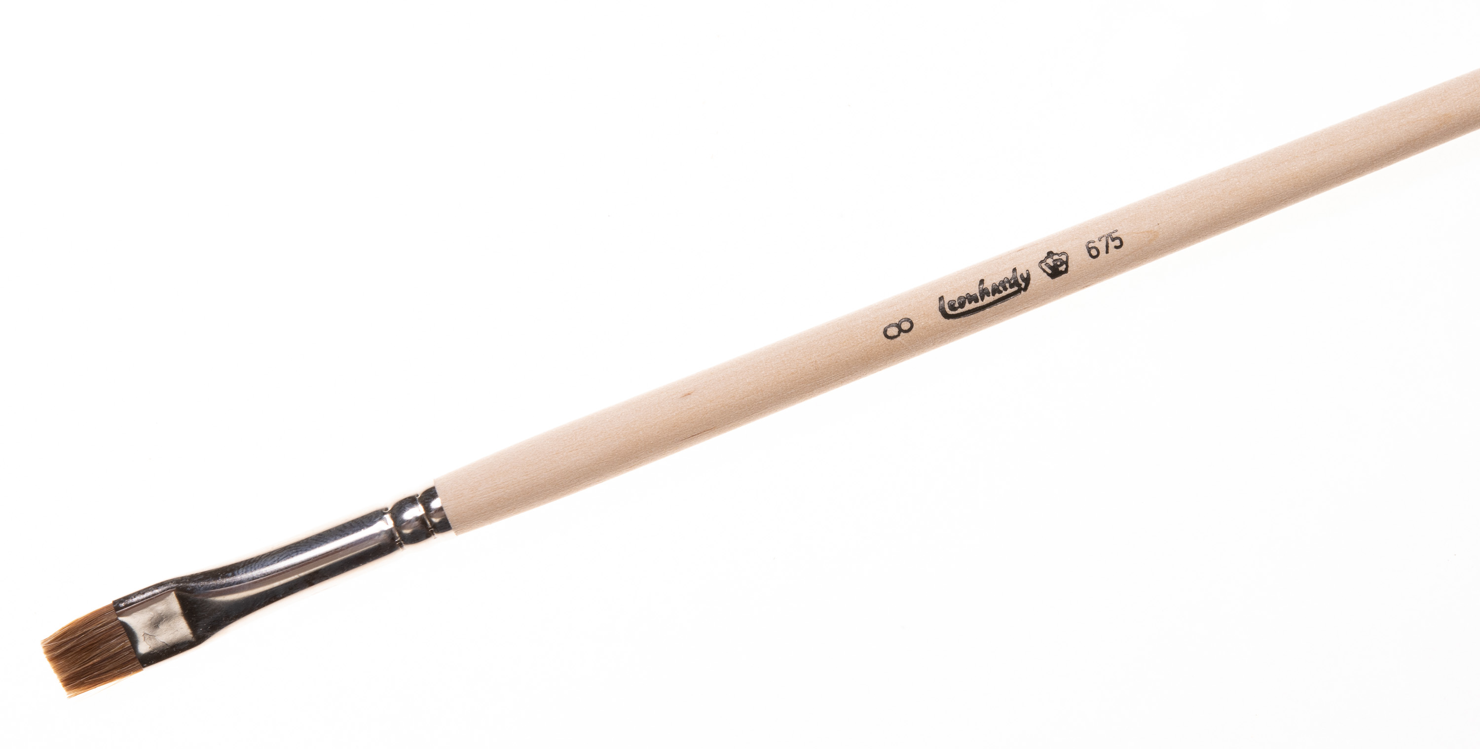 Rindshaar-Gussowpinsel, helles Rindshaar, langer Stiel.