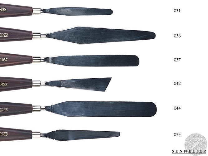Die aus einem Stahlblock geschmiedeten, rostfreien Palettenmesser erlauben einen homogenen Aufstrich der Paste durch die Formbeständigkeit der Klinge.