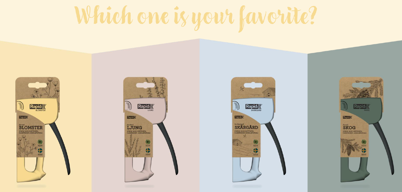 Kleine Kunststofftacker für Feindrahtklammern, 4-10 mm ( Typ 53 )Made in Sweden90 % des Kunststoffmaterials stammen aus recyceltem KunststoffSanfte und trendige nordische FarbenFarben und Produktnamen, die auf Elementen aus der schwedischen Natur basierenNachhaltige Verpackungs- und Displaylösungen, Recycelter und wiederverwertbarer Karton Minimalistische Verpackung zur Präsentation des Produkts und zur Reduzierung des Verpackungsmaterials.