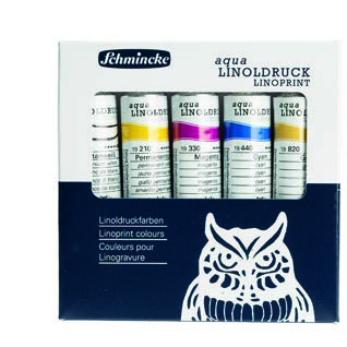 • Schmincke aqua Linoldruck-Farben: 1 Tube Schwarz à 35 ml, Set mit 5 Tuben à 20 ml in 3 Primärfarben + Weiß + Gold